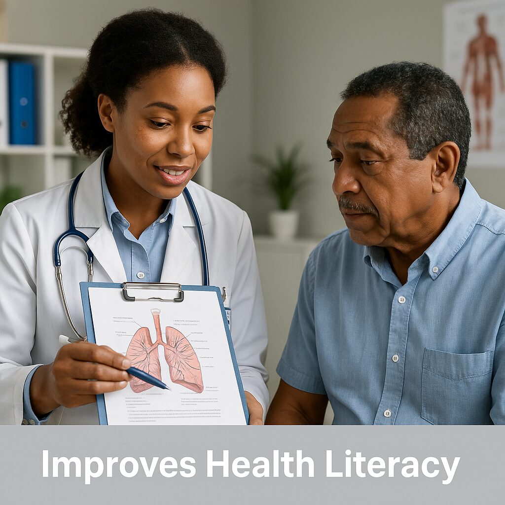 - Instructional content on medication adherence and lifestyle changes (e.g., healthy eating, sun safety, health literacy, asthma med management)